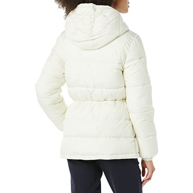 Женская пуховая куртка с резинкой и тяжелым поясом в цвете слоновой кости