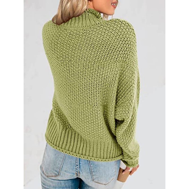Женская свитер с высоким воротником в травяно-зелёном цвете
